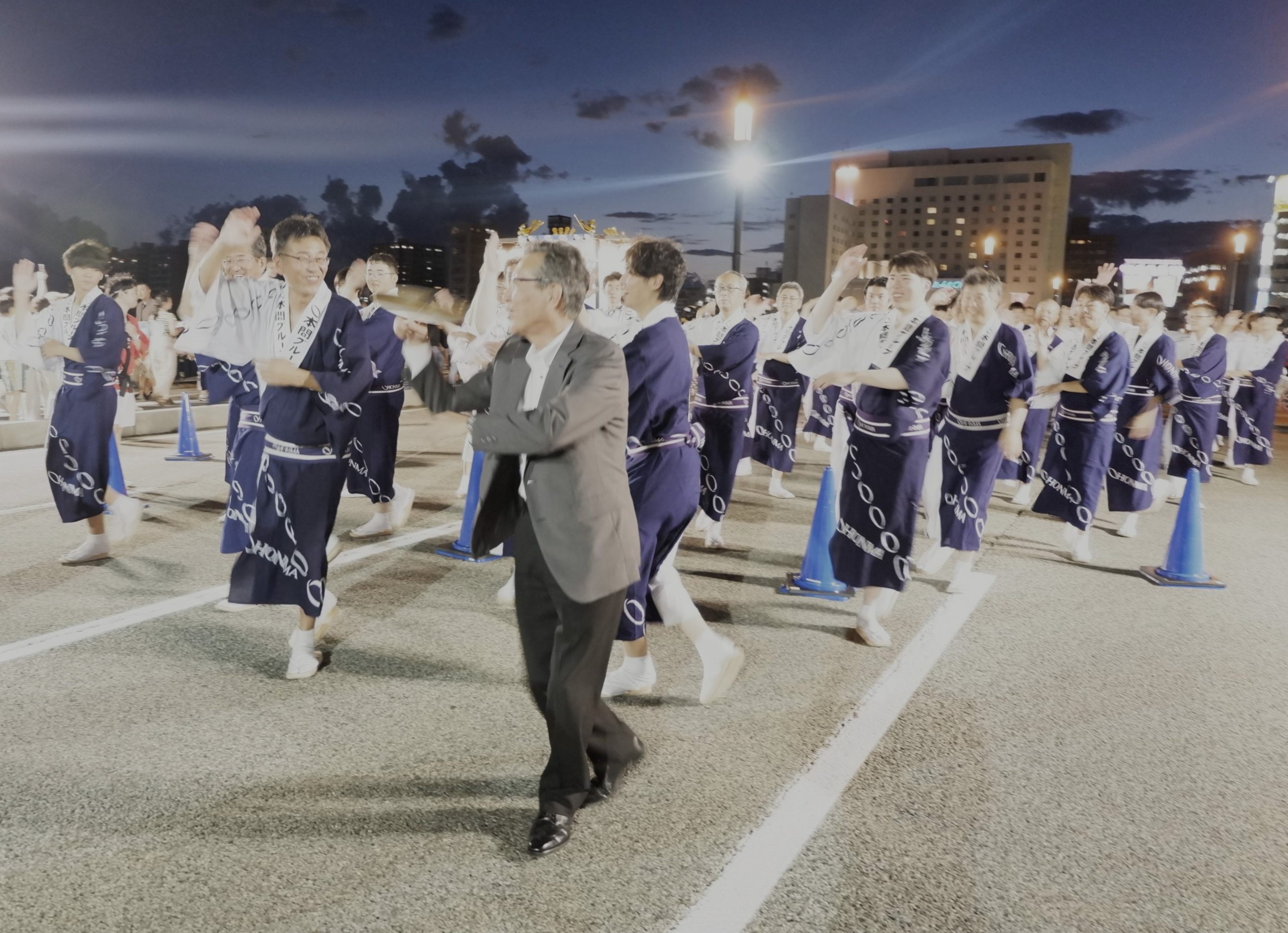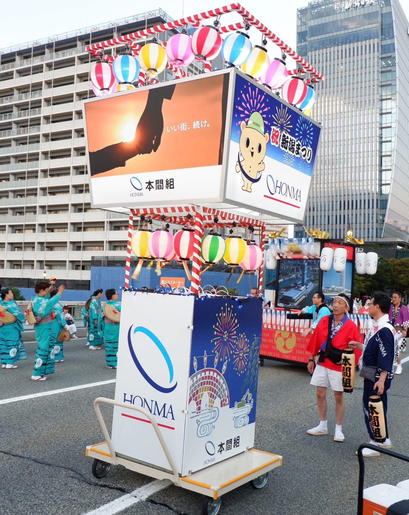 HONMAグループからは総勢100人がそろいの浴衣や法被で参加し、軽快な笛や太鼓のリズムに合わせて「新潟甚句」や「佐渡おけさ」を踊り、祭りを盛り上げました。